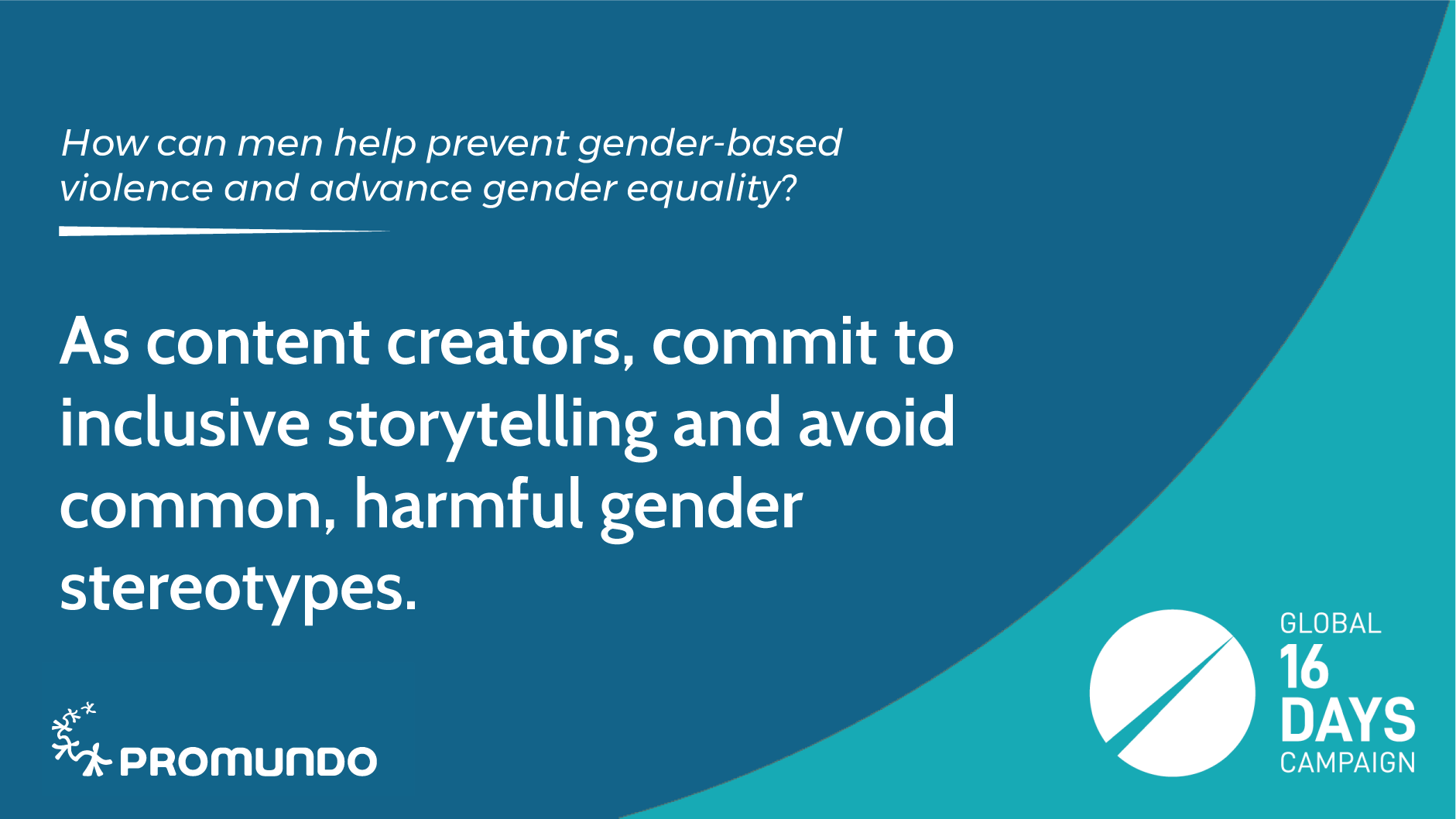 4. As content creators, commit to inclusive storytelling and avoid common, harmful gender stereotypes. Media has the power to challenge harmful gender norms, including stereotypes that men are and/or should be inherently violent, stoic, and less competent parents.